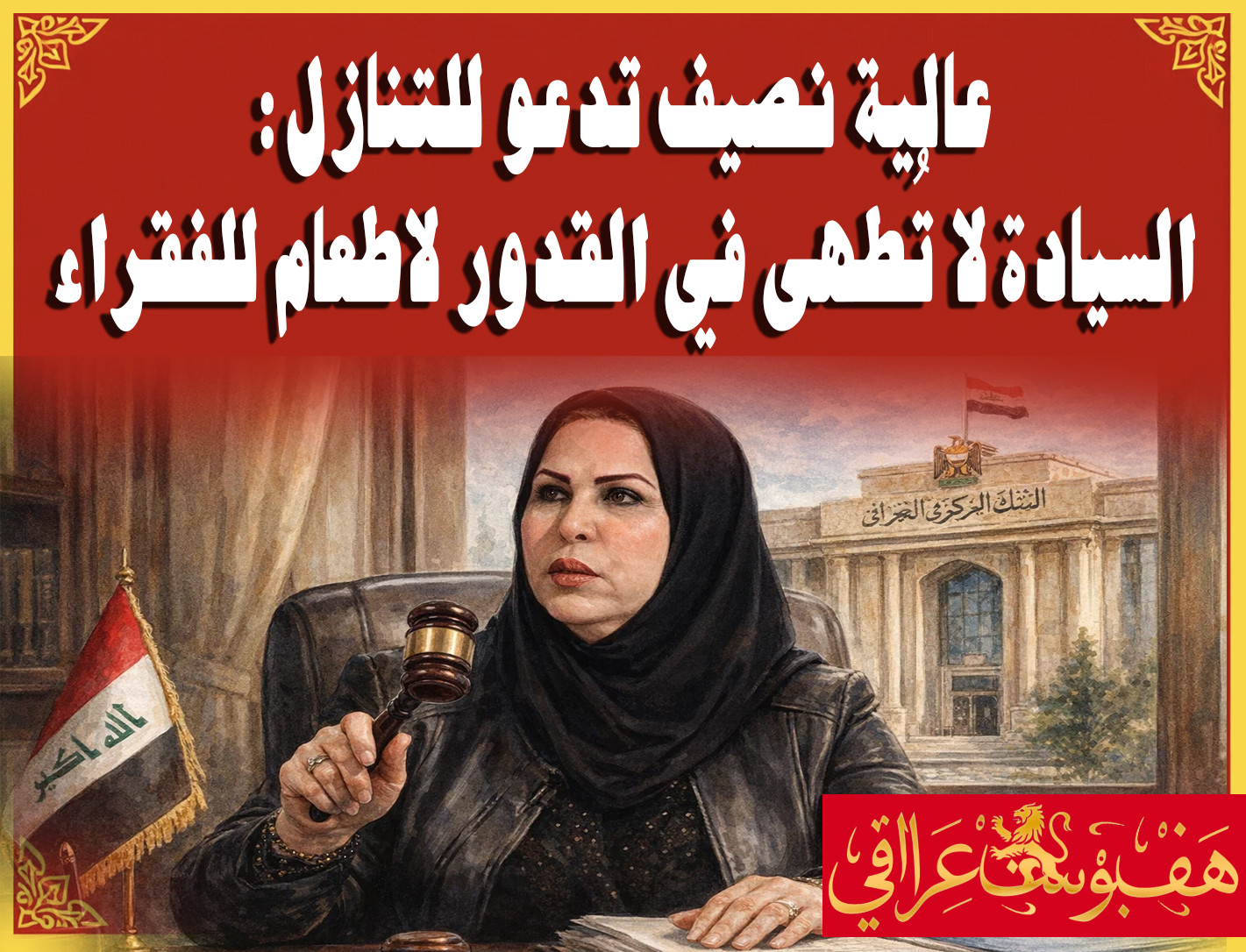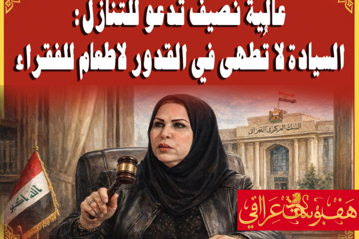 عالية نصيف تدعو للتنازل: أطبخوا السيادة في القدور وأطعموا الفقراء فبراير 21, 2026 فبراير 21, 2026 هف بوست عراقي (hpi)(الحقيقة بلا فلتر 🔥): (ادرجنا اسمكم في القائمة الارسالية، لأهميته، تقبّل منا ذلك وحريصون على التواصل معك...Continue reading→