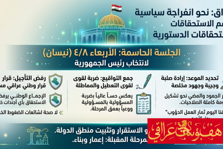 أنانية الانسداد أم إرادة الـ228؟.. معركة حاسمة لانتخاب رئيس الجمهورية وتكليف رئيس الحكومة مارس 27, 2026 مارس 27, 2026 هف بوست عراقي (hpi)(الحقيقة بلا فلتر 🔥): (ادرجنا اسمكم في القائمة الارسالية، لأهميته، تقبّل منا ذلك وحريصون على التواصل معك...Continue reading→